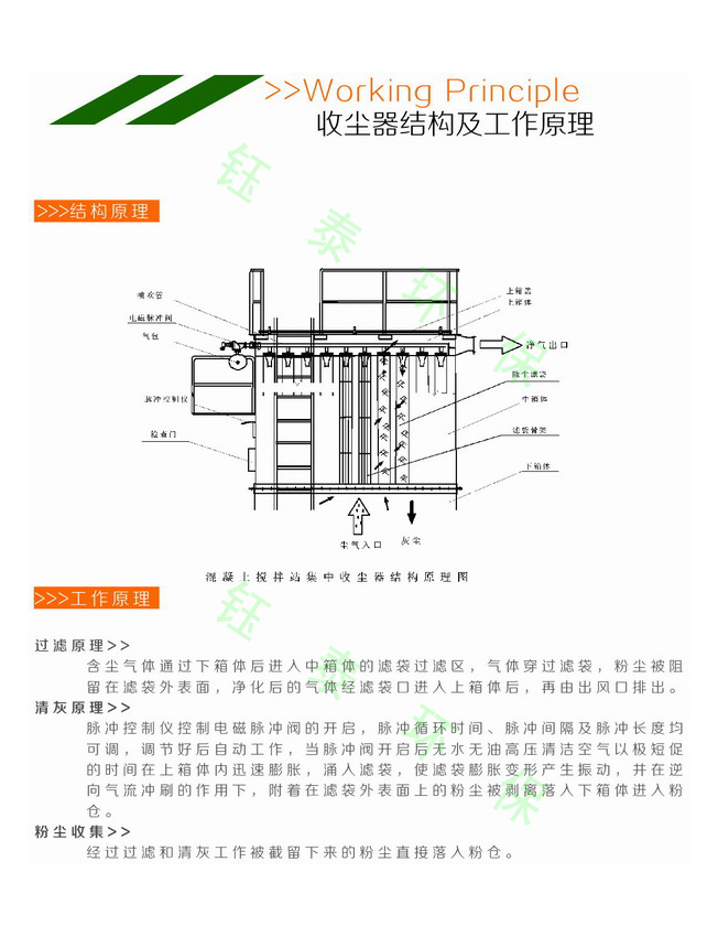 YT24倉頂除塵器主要應用于筒倉頂部進行收塵處理,是根據水泥、粉煤灰、石灰等各種粉狀物質的粒徑,設計其除塵器濾袋的O通過直徑并考慮附著力作用給濾袋孔徑的影響,使之完全可以滿足各類粉狀物質的過濾要求。