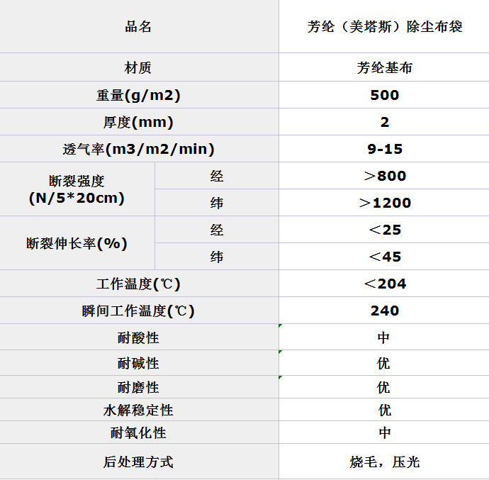 瀝青攪拌站美塔斯除塵布袋可在204度下連續使用,并可承受反復的250度瞬時波動溫度,尺寸穩定性好(250度時熱收縮率1%),防火性能好,400度時才分解碳化,不自燃也不助燃,低濃度的酸堿和大多數碳氫化合物對它無影響,良好的化學性,適用于瀝青混凝土攪拌瀝青的干燥旋轉窯的煙氣。